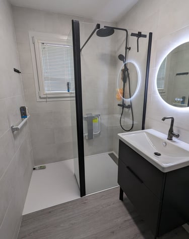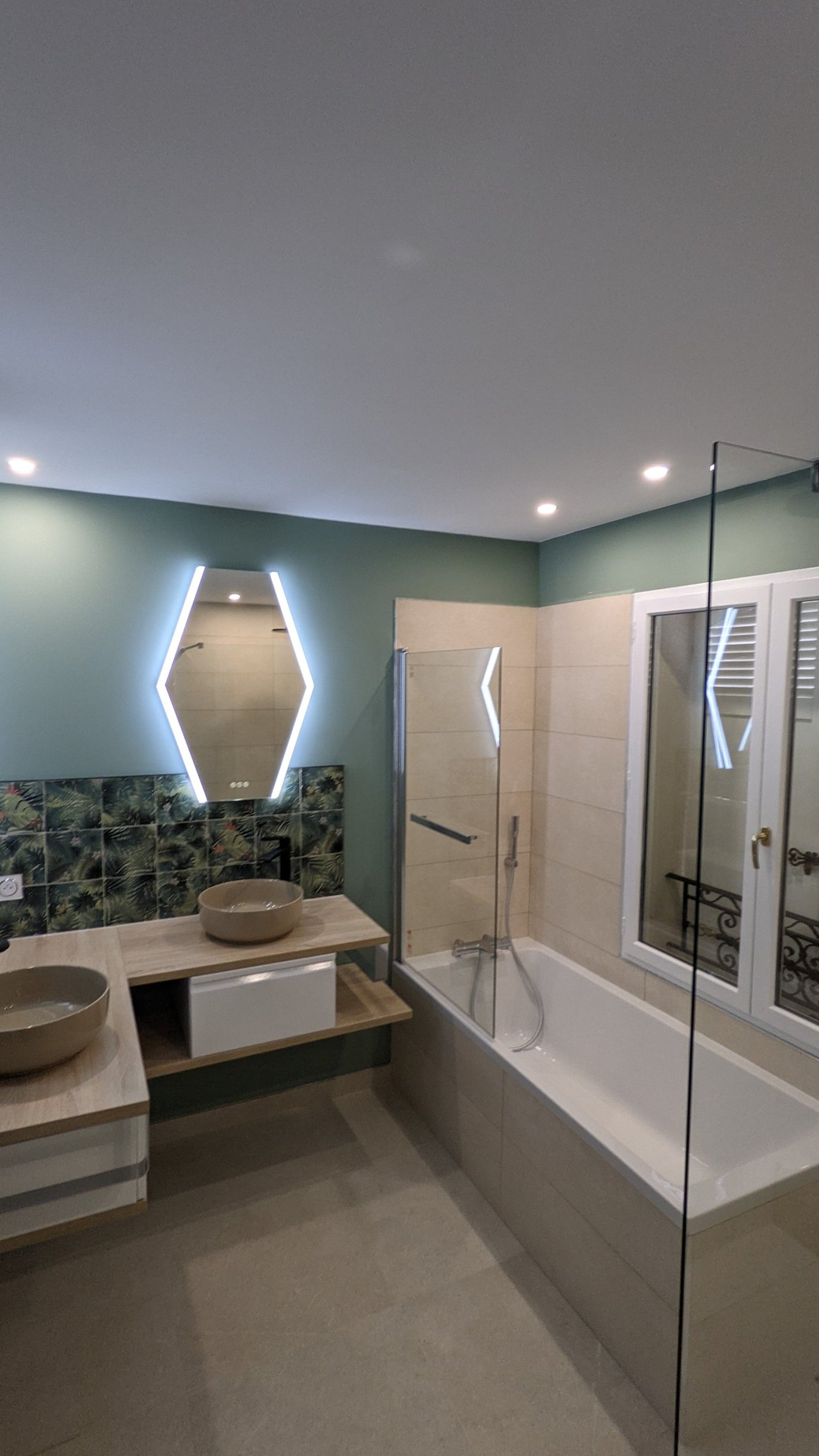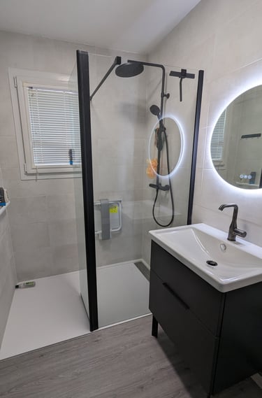 Nous réalisons votre salle de bain clé en main : plomberie, installation des sanitaires, carrelage