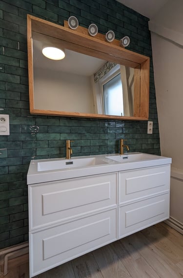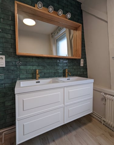 Nous réalisons votre salle de bain clé en main : plomberie, installation des sanitaires, carrelage et faïence.